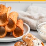 Or, just form small flat circles and fry them as "cannoli chips" and use them to dip into the cannoli cream instead. I love doing this with any leftover dough scraps as well!