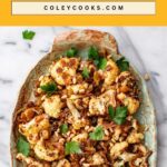 To reheat, spread the cauliflower on a baking sheet and warm in a 350°F oven for 5-10 minutes until heated through. Alternatively, take it out of the fridge and enjoy it at room temperature.