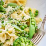 This simple recipe for pasta primavera is made the way it should be, with true spring vegetables! My version skips the bell peppers and zucchini and instead highlights the best of the season with a flavorful mix of asparagus, peas, broccoli and leeks. It all gets tossed with pasta and a garlicky lemon butter sauce for a fresh, vibrant spring dinner that comes together in 40 minutes or less!